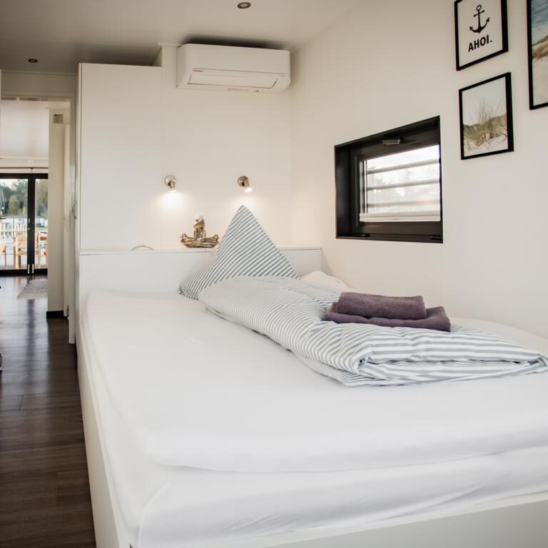 Das Hausboot ist ein floating 44. Es besitzt 2 Schlafzimmer mit je einem Doppelbett. Das Badezimmer ist mit einer Dusche ausgestattet und einem separaten WC. Der Wohn- und Essbereich ist ein stilvoll eingerichteter Raum mit einer dreiseitigen Glasfront.