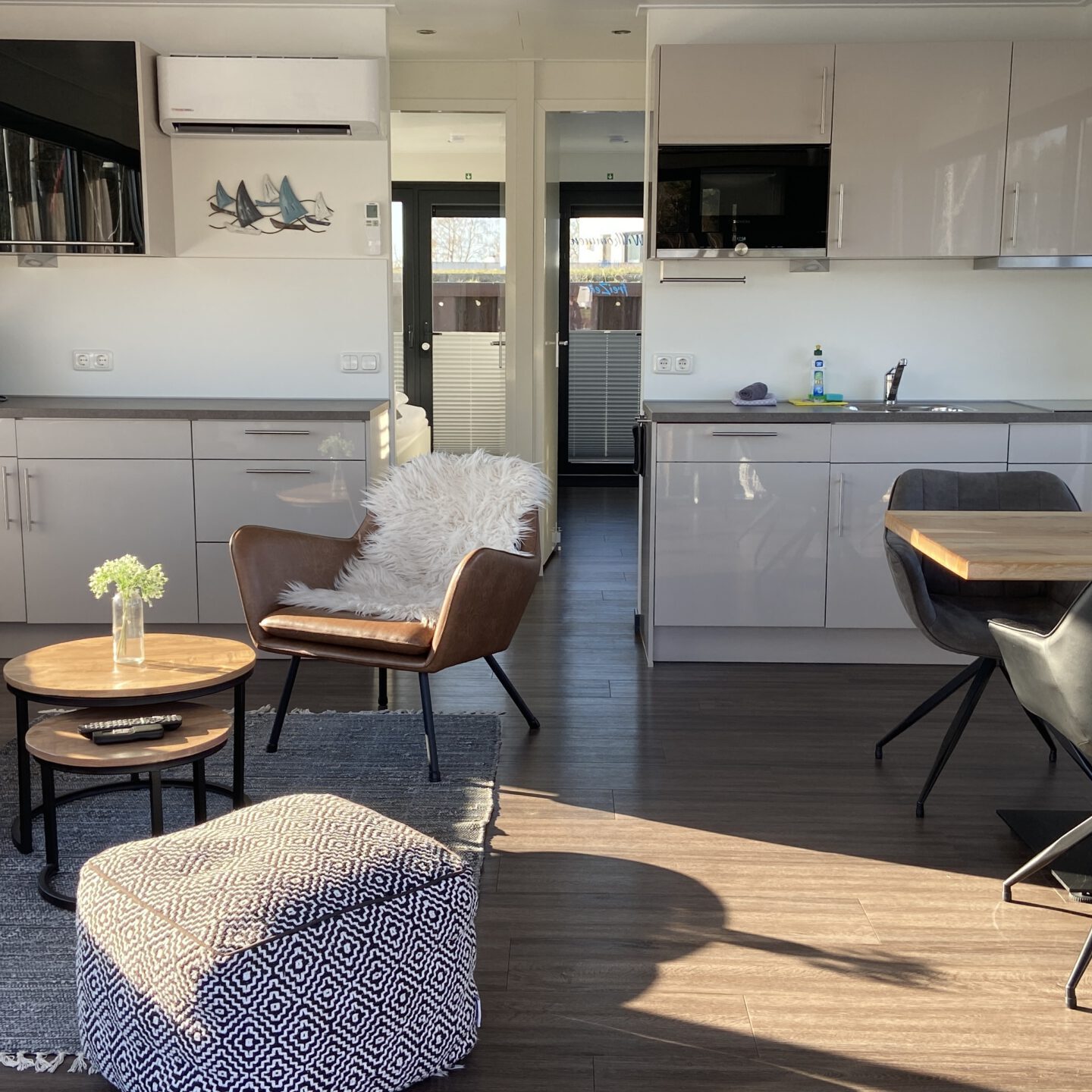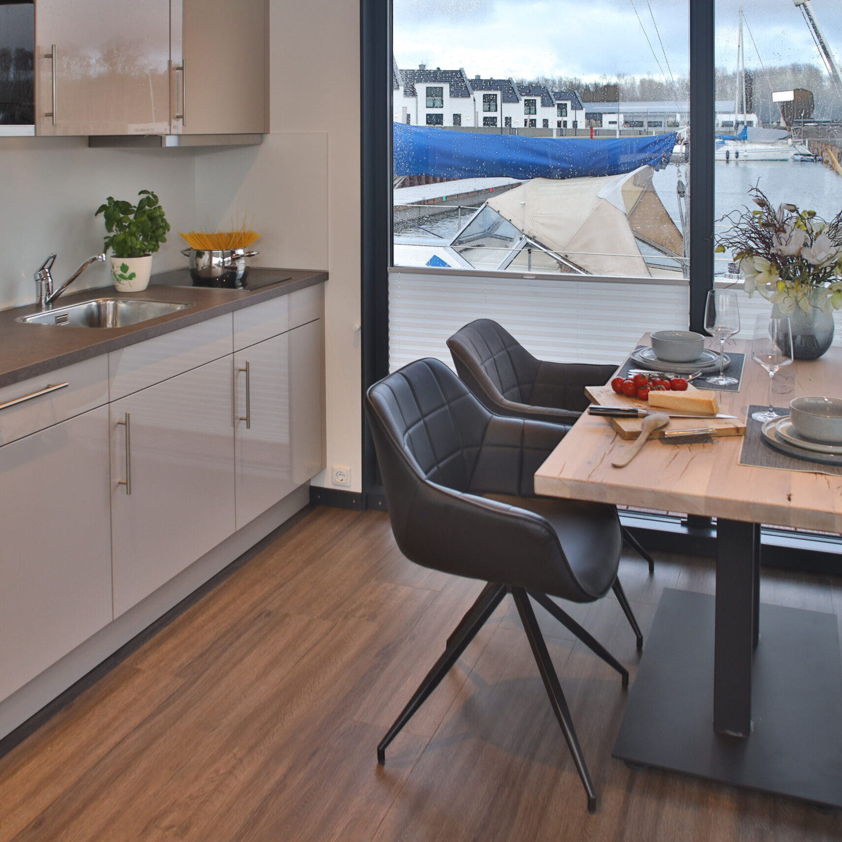 Aus dem Wohn- und Essbereich gelangen Sie auf die Terrasse. Hier können Sie Ihre Mahlzeiten genießen. Erleben Sie das Gefühl von Freiheit auf dem Wasser!